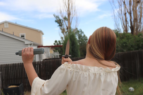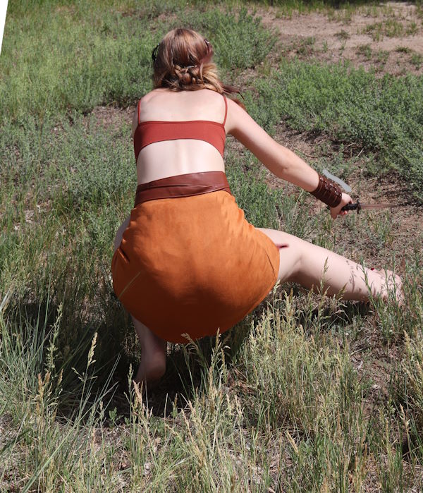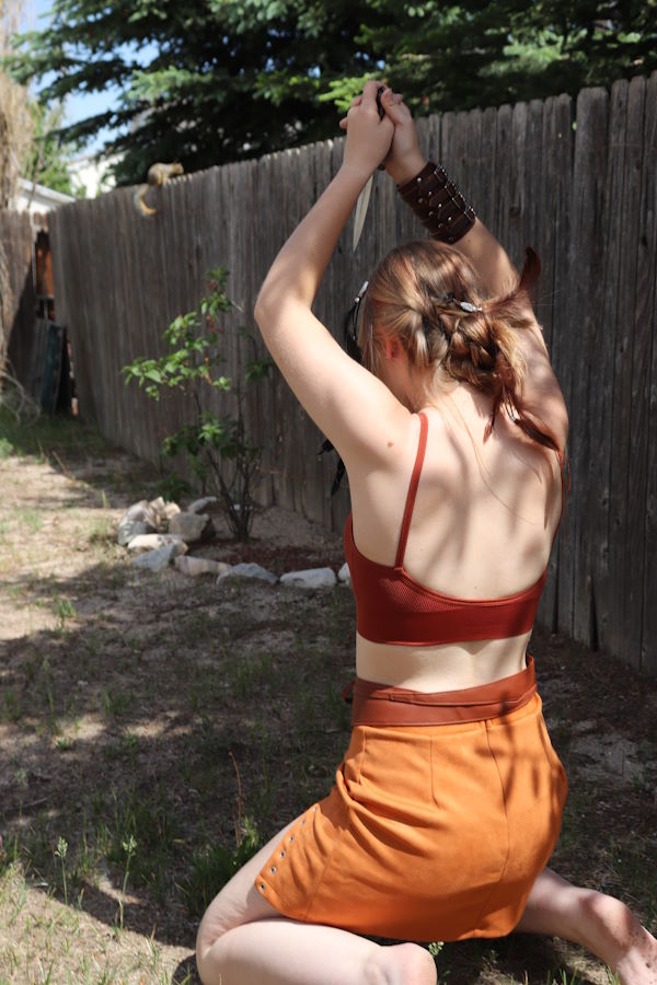 I met with my with my model and it was fun trying to explain her poses without her ever reading the book. (“Here, you’re stabbing a man”) It was also fun to finally see my character come to life. After editing the pic for the first chapter, I just became giddy!